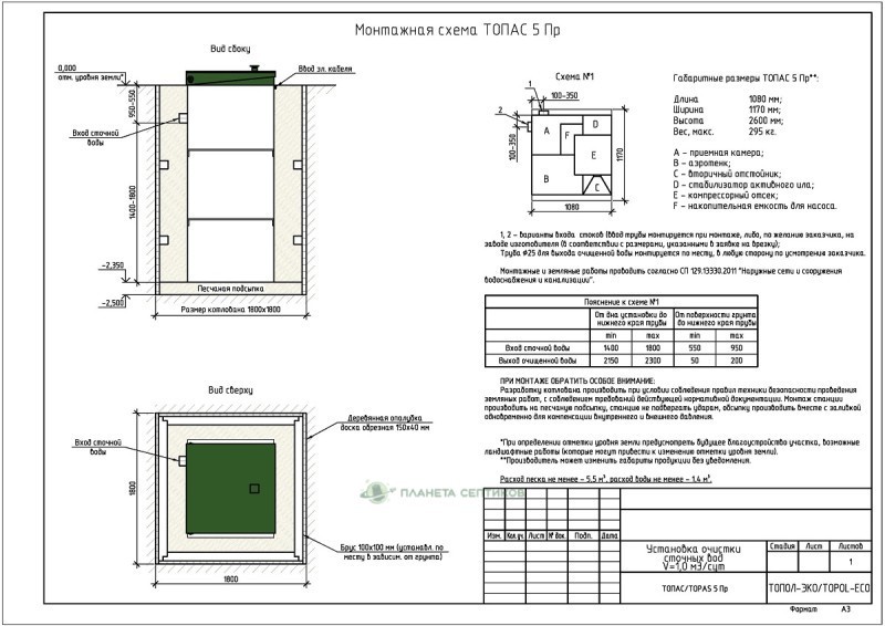 Цены на монтаж септик Септик Топас 5 (принудительный)