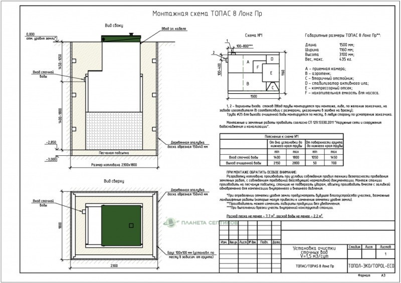 Цены на монтаж септик Септик Топас 8 Лонг Пр