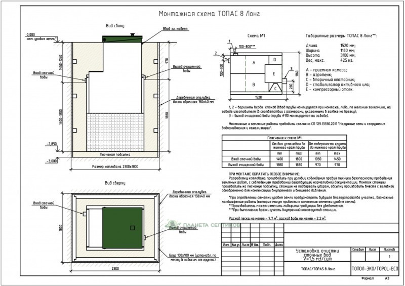 Цены на монтаж септик Септик Топас 8 Лонг