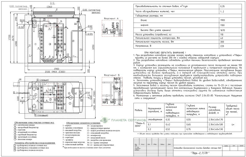 Цены на монтаж септик Септик Тверь 0,35ПН