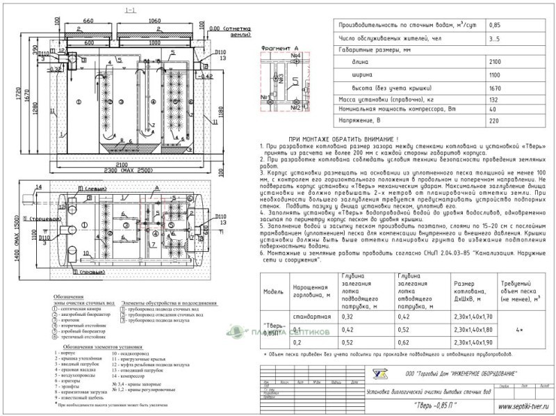 - Септики на 8,5 кубов (8,5 м3/сут)