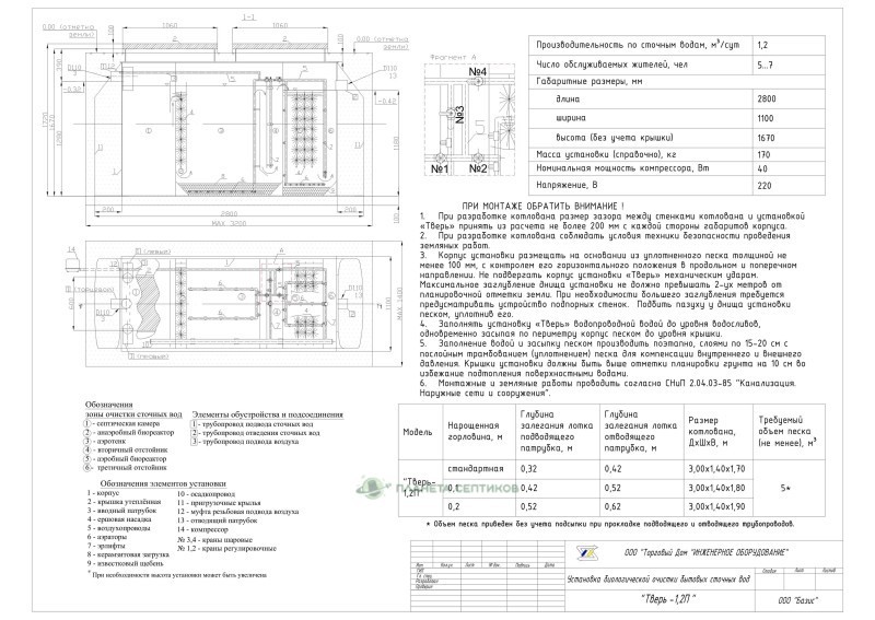 Цены на монтаж септик Септик Тверь 1,2П