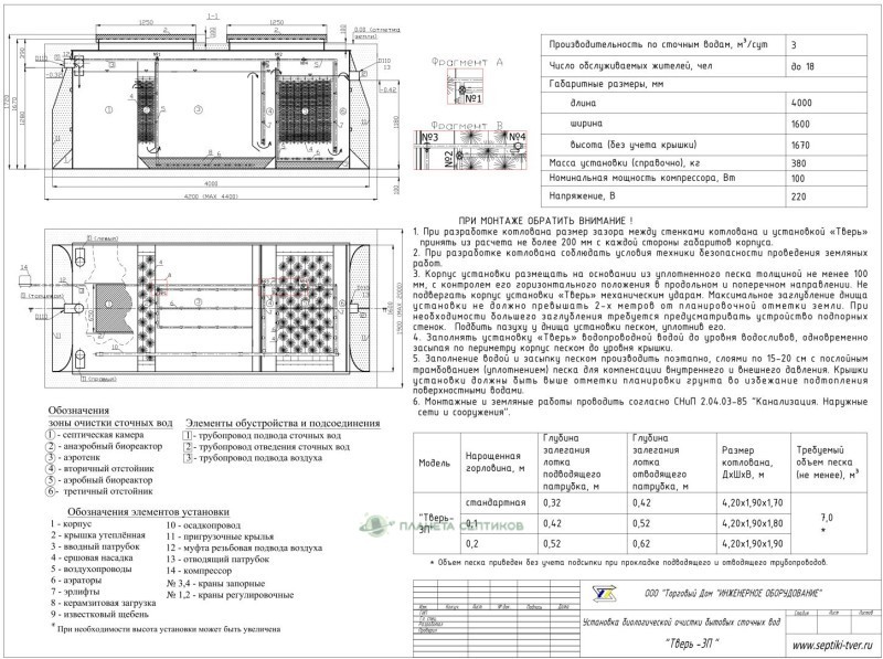 - Септики на 9,5 кубов (9,5 м3/сут)
