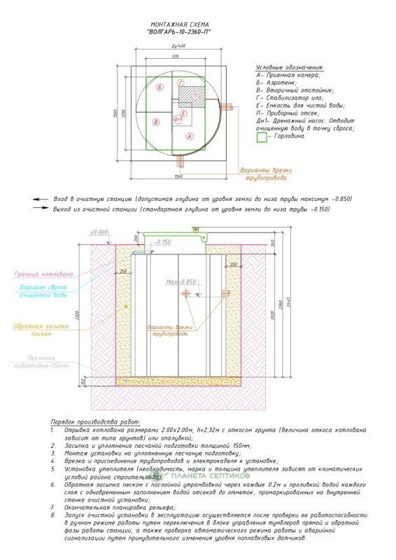 Цены на монтаж септик Септик Волгарь 10-2360-П