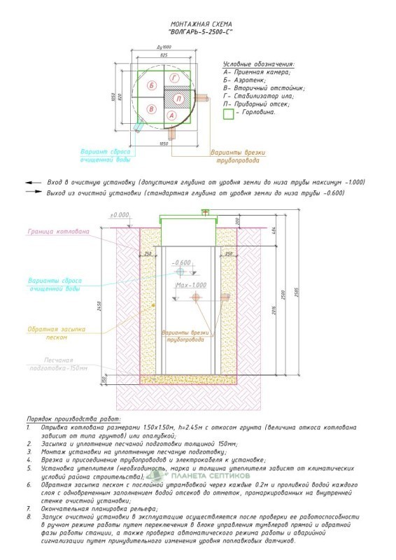 Цены на монтаж септик Септик Волгарь 5-2500-С