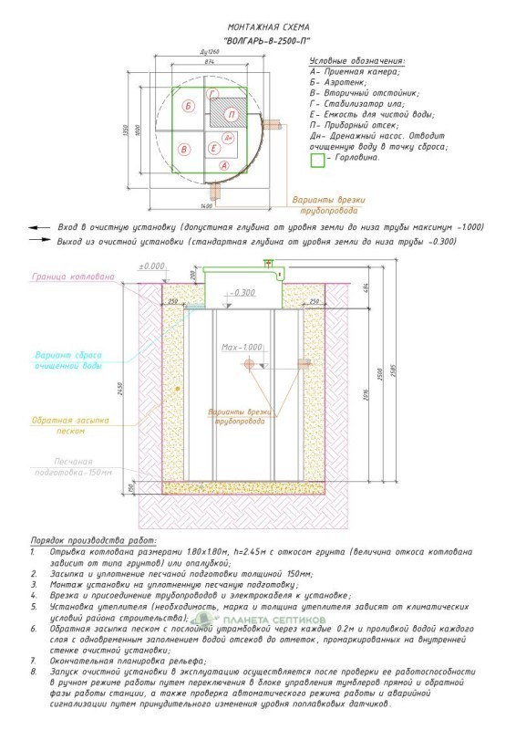 Цены на монтаж септик Септик Волгарь 8-2500-П